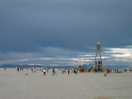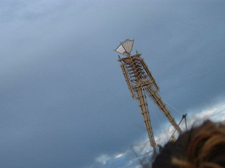 The man seems to be sprouting from someone's skull. Larry Harvey, is that you?