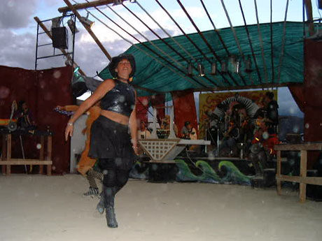 Man, why was I hidin' in my tent from the storm, I shoulda been dancin with these fine ladies. Oh, yeah, I was gettin' nookie.