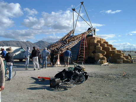 | i always love going by The Man when he's down getting rigged for burning. it's the preparation for the fire, that most cleansing of acts. it's everybody's catharsis that has some other meaning so near my birthday. | |||