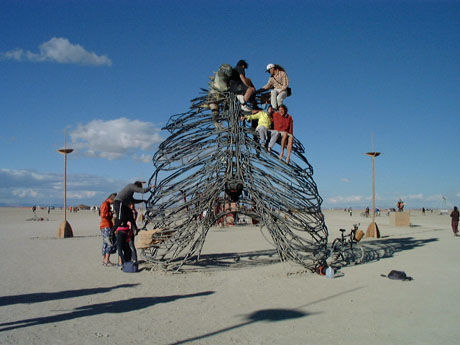 here, but there's a swing inside the ribcage. a lot of folks were on it
