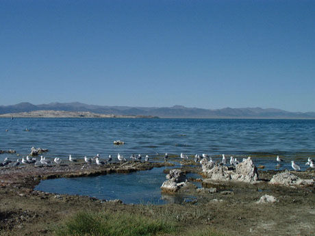 here's mono lake with tufas of rock growing out of the lakebed. deserts