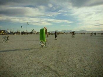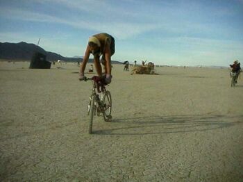Word ortwo of advice: lock yer bike. Upon emerging from a rave dome, I looked the other way for the mearist of a second, and saw that someone picked up my bike and was accelerating with it into the pre-dawn on the Playa. Fortunatly, I heeded my survival instinct, and caught up to the rider, and retrieved my ride before he hit warp factor. An honest mistake, I'd like to assume, but be forwarned, unless u wish to walk.